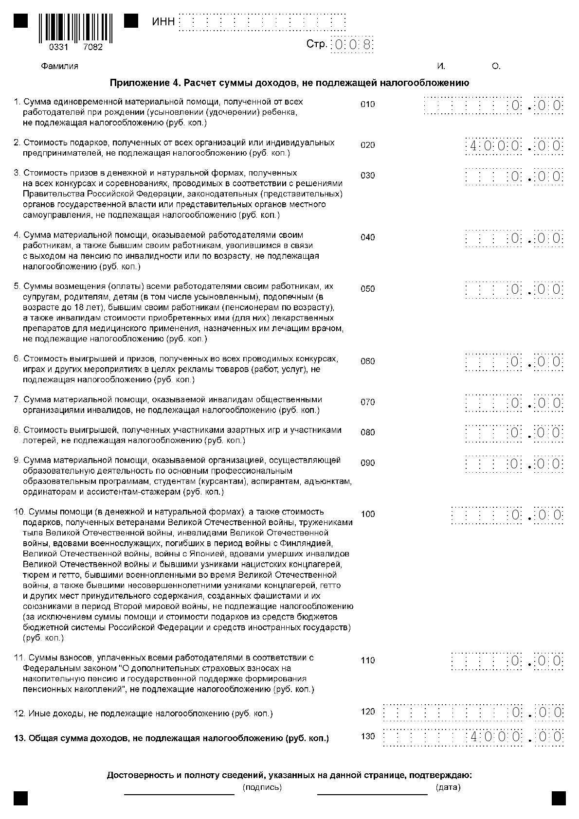 Приложение 4. Расчет суммы доходов, не подлежащей налогообложению