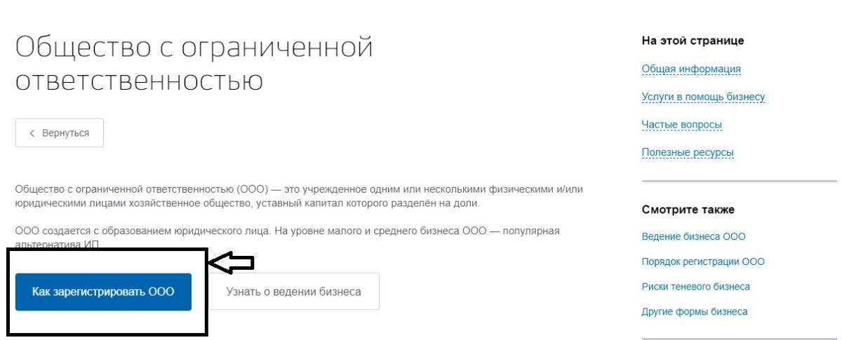 Затем открыть вкладку «Как зарегистрировать ООО».