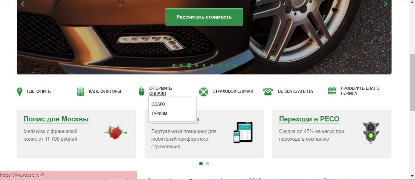На большинстве официальных порталов есть отдельная вкладка для приобретения страховки ОСАГО через интернет. Она выглядит следующим образом:
