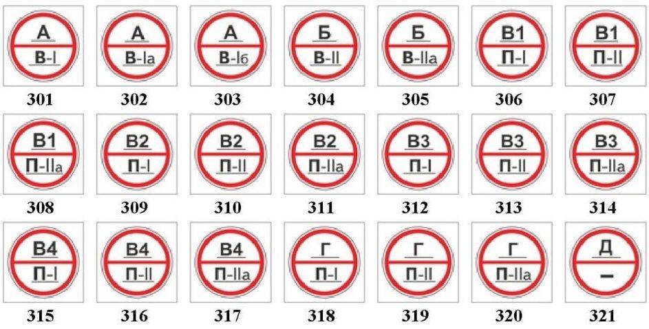 Эти таблички позволяют рабочему персоналу, сотрудникам МЧС и всем остальным определять, что именно их ожидает за данной дверью. На фотографии представлены различные варианты существующих КВПО и классам ЗОН: