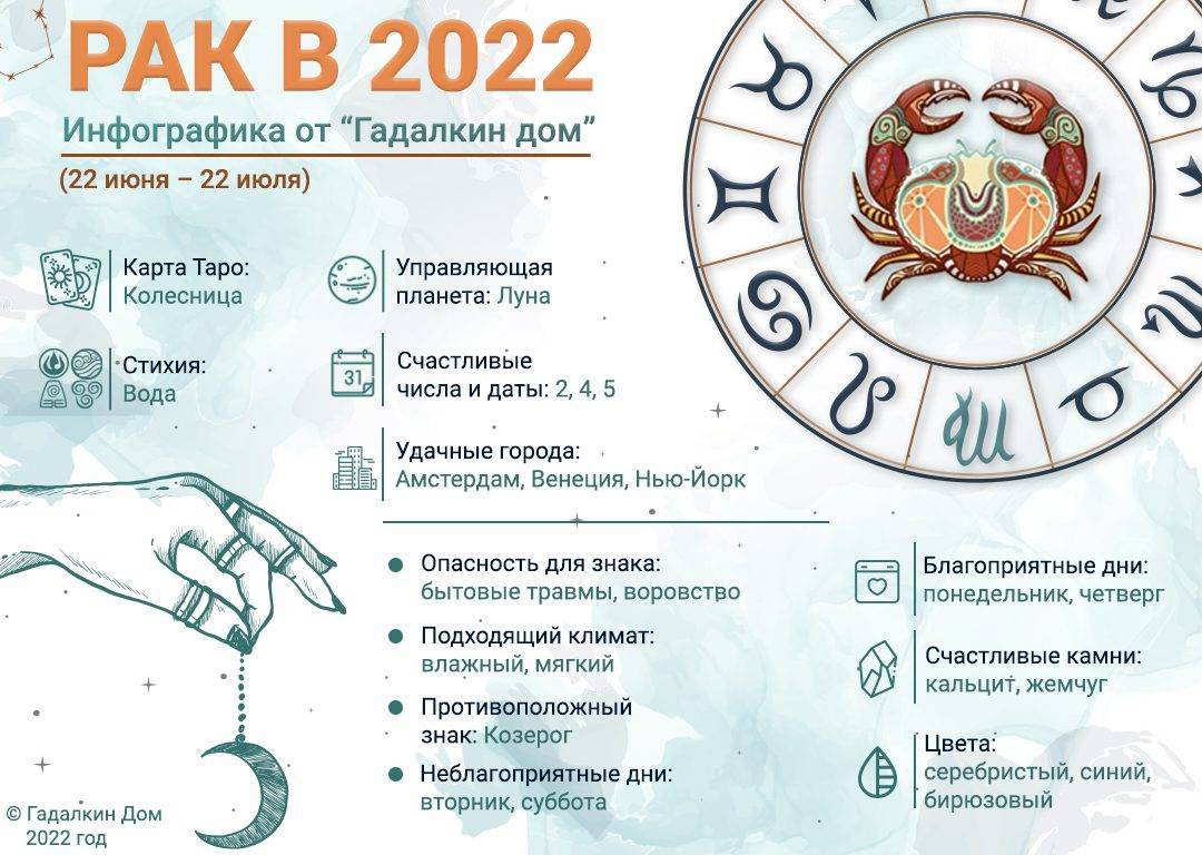 Гороскоп Рак 2022 год: инфографика от сайта Гадалкин дом.