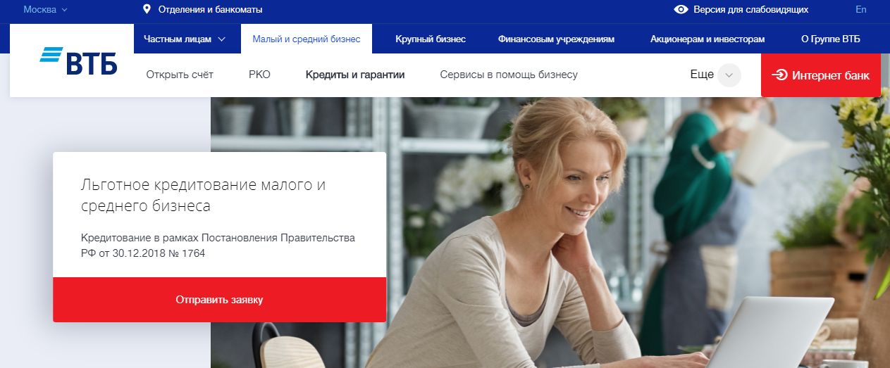 - Банк ВТБ24, программы «Целевой», «Инвестиционный», «Коммерсант». Кредитный лимит в ВТБ 24 определяется возможностями предпринимателя. Минимальный объем заемных средств – 850 тысяч рублей, величина процентной ставки – до 13%. Срок устранения задолженности – не более 5 лет, 10 лет для программы «Целевой».