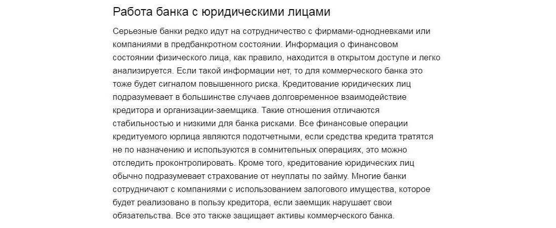 Работа банка с юридическими лицами.