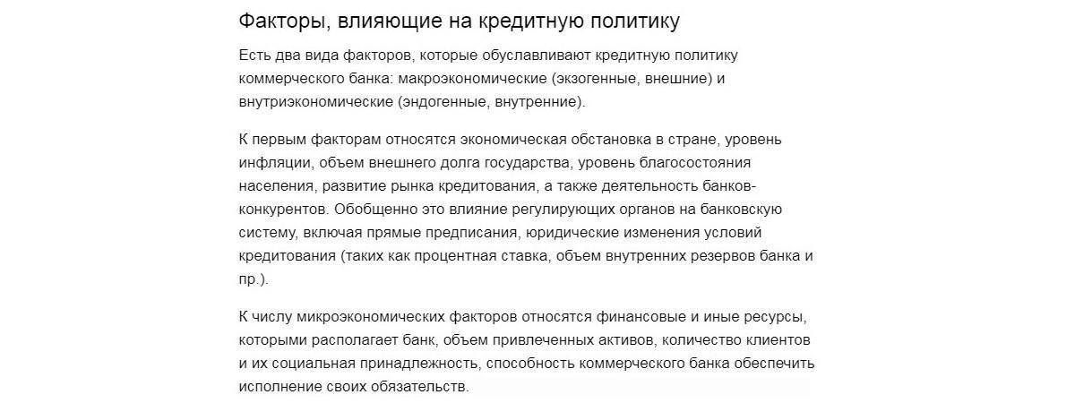 Факторы влияния на кредитную политику