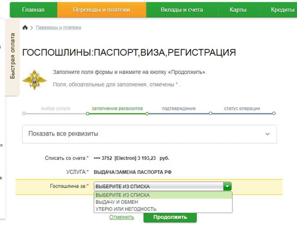 Оплата госпошлины за паспорт через Сбербанк Онлайн