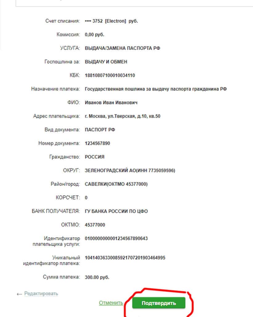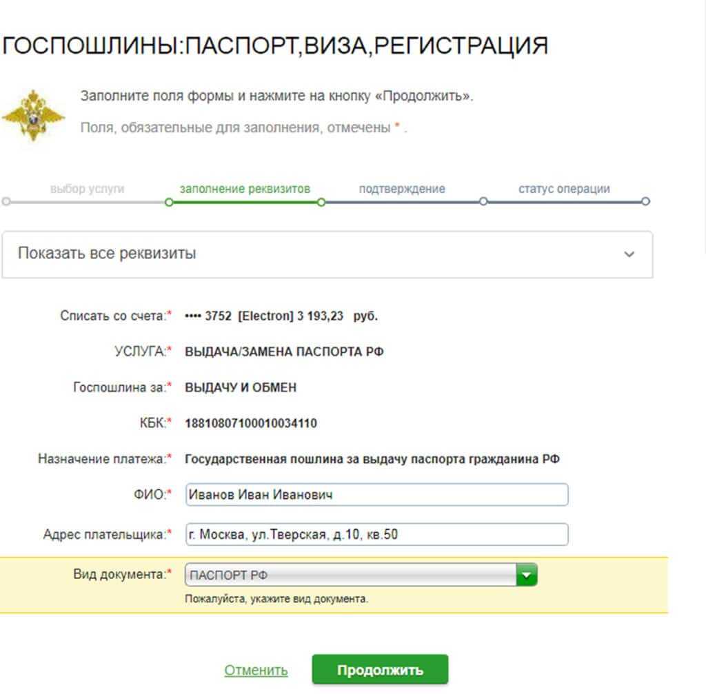 Далее, в открывающихся окнах заполняем данные (номер документа, гражданство, округ, район, город). В конце система предложит проверить вам все реквизиты и указанные данные. Если все верно, жмите «Подтвердить платеж».