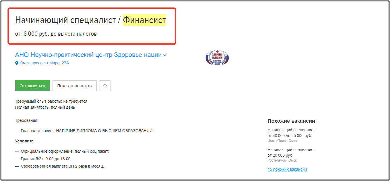 По данным сайта HeadHunter, самая низкая зарплата у начинающего специалиста в Омске — от 18 000 рублей (до вычета налогов):