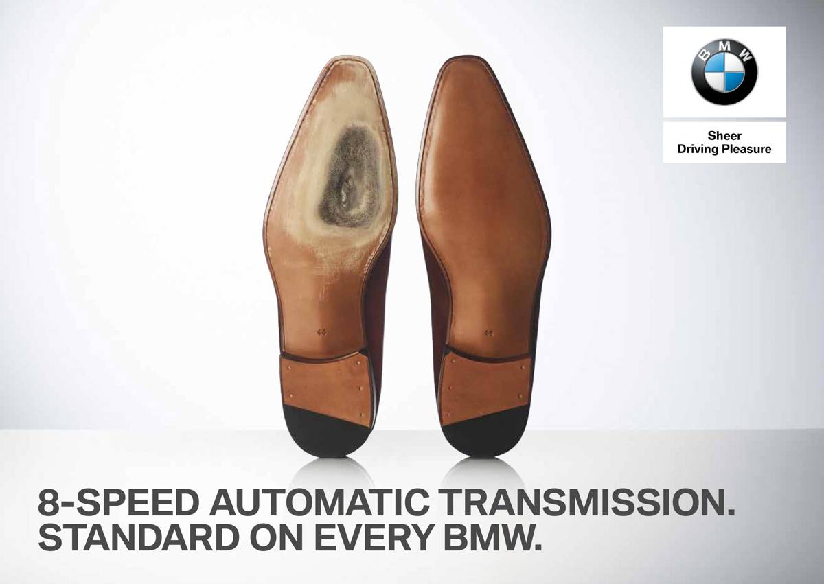 В то время как производитель на самом деле продает автомобиль, стильная обувь (явно злоупотребляющая любовью к педали акселератора) придает статусную привлекательность, которая несколько влияет на подсознание в своем сообщении.