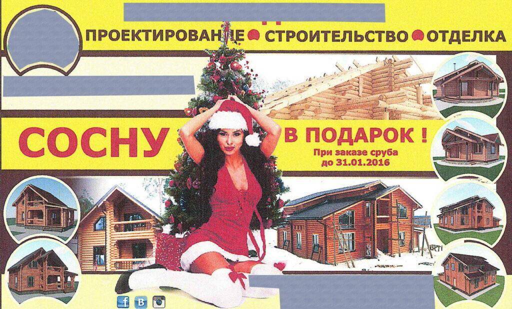 Самое интересное, что рекламодатель действительно был готов подарить сосну, если заказчик заказал бы сруб до Нового года. Но ФАС (Федеральная антимонопольная служба) этот креатив не оценила и потребовала убрать баннер. Причина – «откровенность наряда девушки в сочетании с текстом, выделенным крупным шрифтом, относительно прочей информации, несет двусмысленную информационную нагрузку непристойного характера с учетом грамматической основы слова».