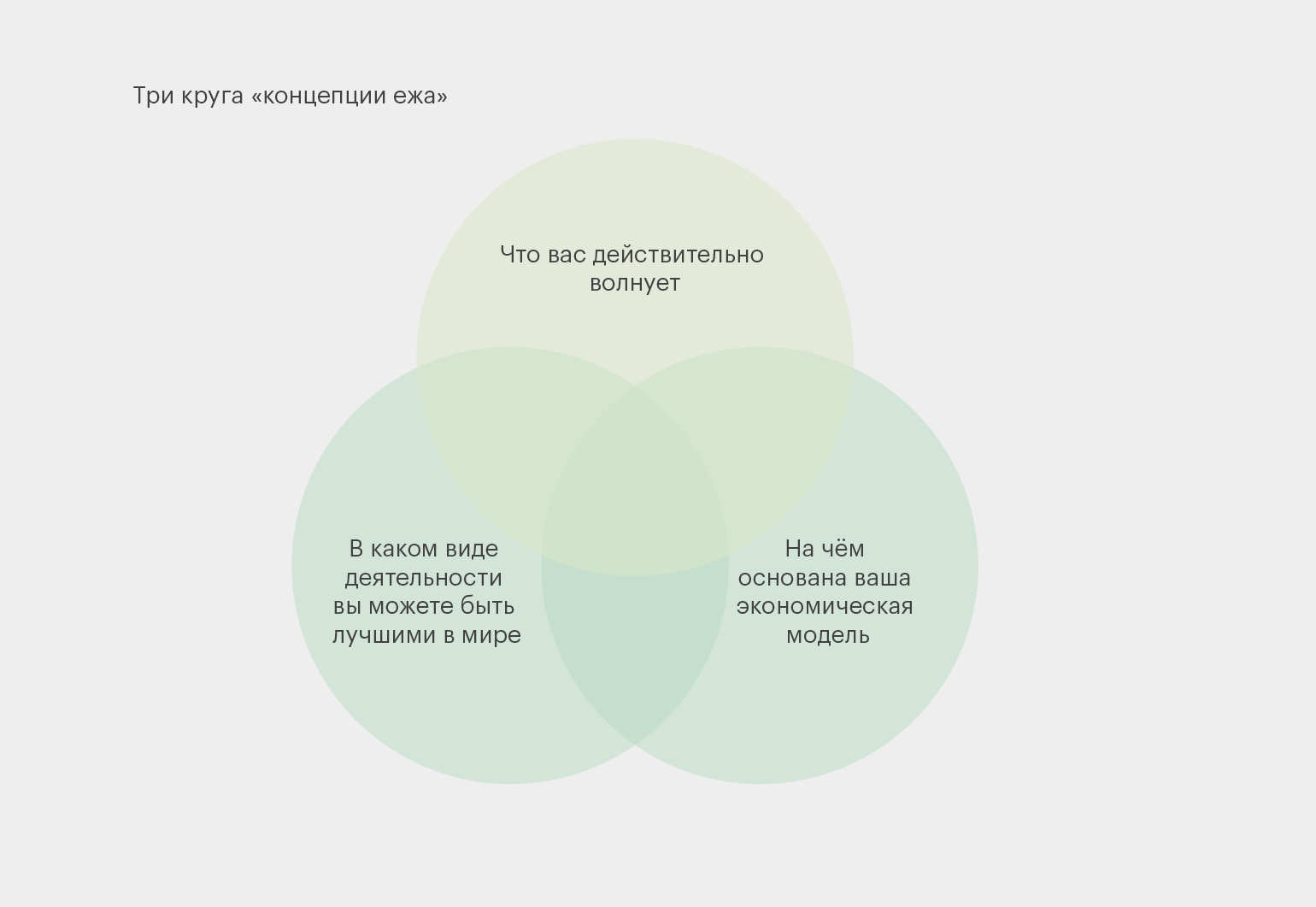 - Следуйте «концепции ежа», придерживаясь трёх кругов. Нужно создать список того, чего не надо делать, и последовательно отказаться от всего лишнего.
