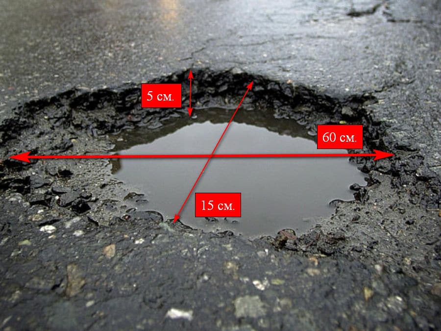 Нормальной считается дорога, которая соответствует требованиям ГОСТ Р 50597-93 «Автомобильные дороги и улицы». Самое главное в них – предельно допустимые размеры ям и выбоин на дорогах. Дорога признается несоответствующей ГОСТу, если яма хотя бы по одному параметру больше норматива: