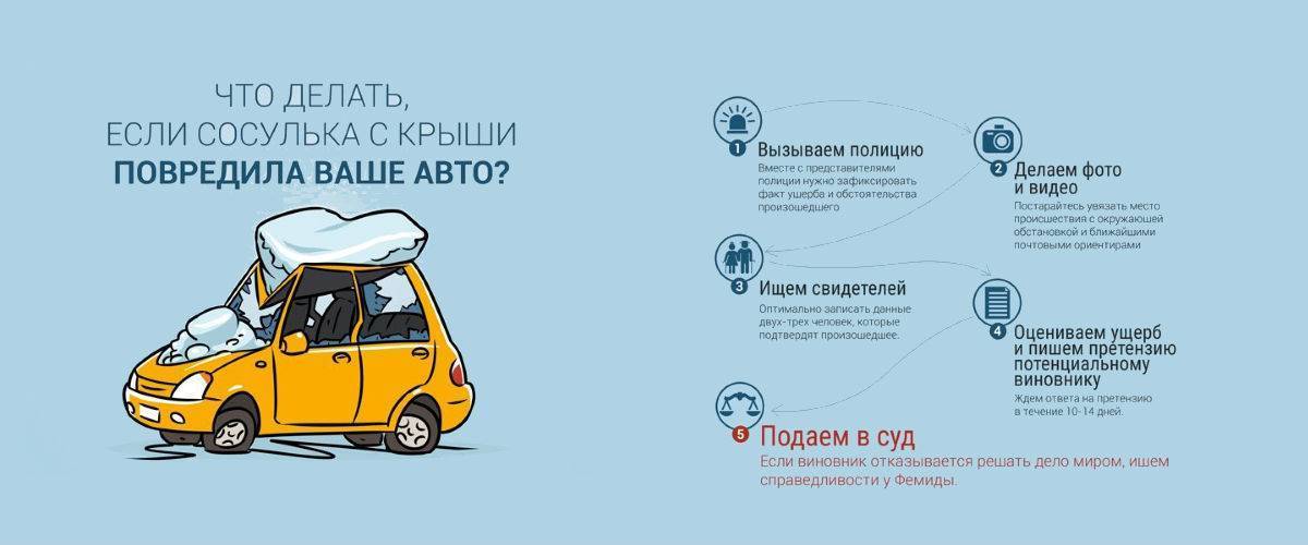 Если виновника не установит полиция, пострадавшему придется доказывать, что ущерб его автомобилю был причинен в результате противоправных действий (ненадлежащей уборки), что ведет к суду.