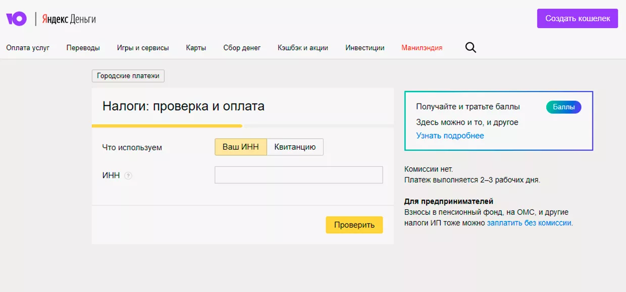 Нужно просто ввести ваш ИНН или индекс из квитанции (если она у вас есть). Сервис найдёт задолженность и предложит её оплатить. Оплачивать можно как с электронного кошелька, так и с привязанной карты любого банка.