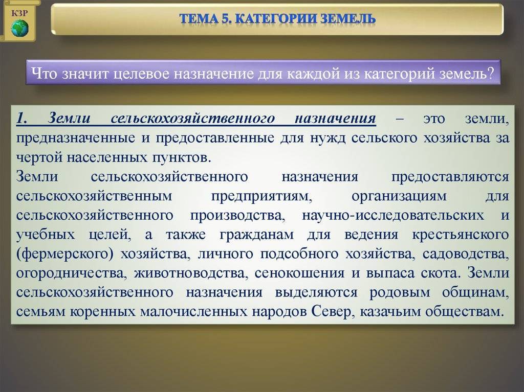 - ряд земель, которые имеют сельскохозяйственное назначение;