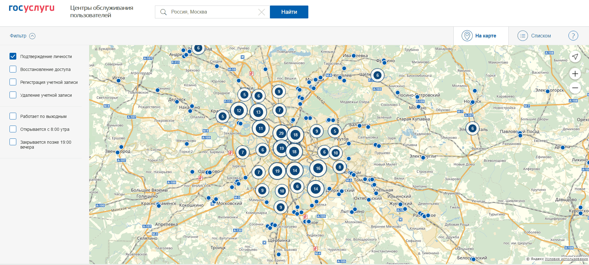 Узнать о том, где находится ближайший центр обслуживания клиентов можно на самом сайте Госуслуг. Для этого необходимо войти в личный кабинет и найти раздел о подтверждении учетной записи. Далее следует выбрать вариант подтверждения «Лично, в офисе получения». Теперь откроется карта, на которой будут показаны все центры обслуживания, где подтвердить учетную запись на госуслугах можно в любое удобное время. Система автоматически формирует список центров, которые расположены ближе всего к клиенту. Для подтверждения в офисе необходимо иметь с собой паспорт и СНИЛС.