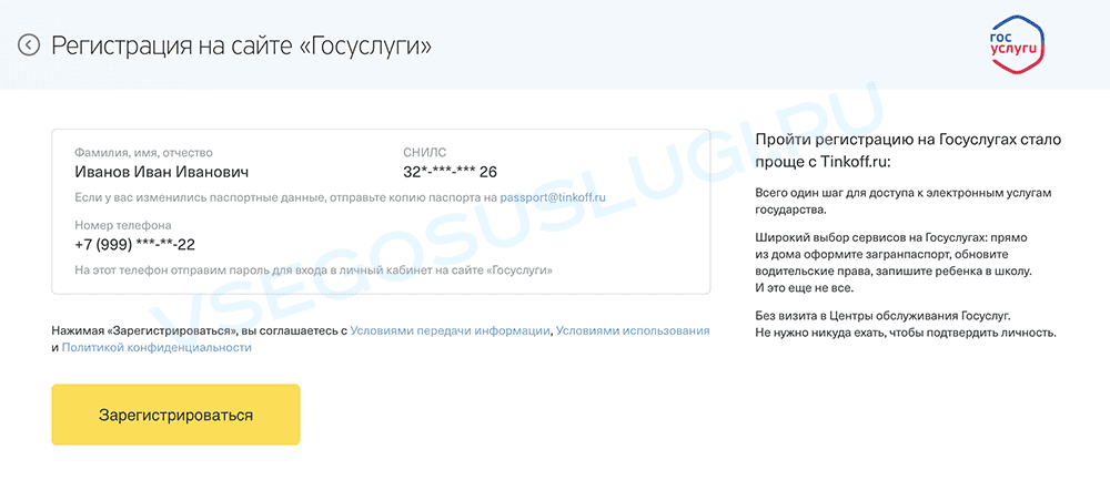 Подробную инструкцию по этому способу мы описали в статье Регистрация и подтверждение личности в Госуслугах через Тинькофф банк.