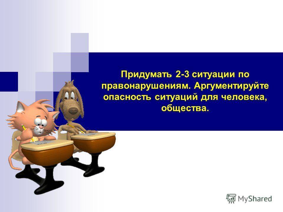 Придумать 2-3 ситуации по правонарушениям. Аргументируйте опасность ситуаций для человека, общества.