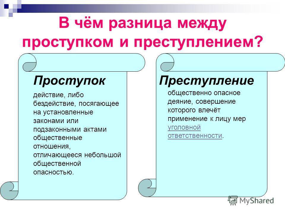 В чём разница между проступком и преступлением? Преступление Проступок