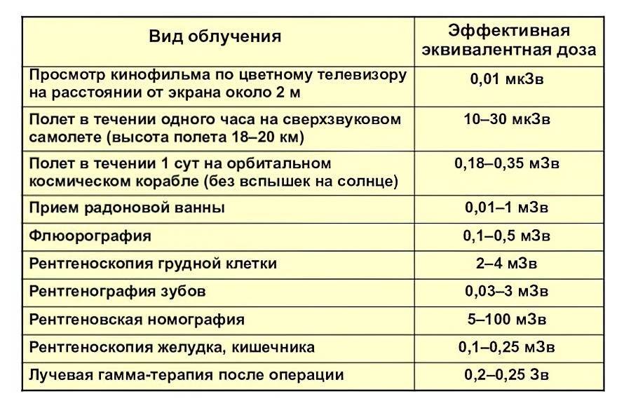 Допустимая, безопасная радиация для человека зависит и от длительности облучения: без вреда для здоровья можно провести несколько часов при внешнем облучении 10 мкЗв (1 миллирентген/час), 10-20 минут – при нескольких миллирентген. Выполняя рентген грудной клетки пациент получает 0,5 мЗв, что составляет половину годовой нормы.