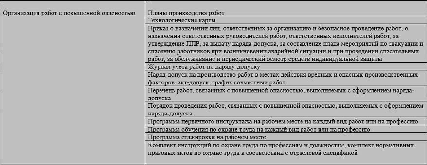При наличии в эксплуатации опасных производственных объектов прежде всего обосновывается их готовность к безопасной эксплуатации, локализации и ликвидации аварий. Существует специальный перечень документов по их эксплуатации и управлению промышленной безопасностью. Для организации СУОТ при проведении работ в опасных условиях и на объектах повышенной опасности количество обязательных внутренних документов увеличивается. Перечень следующий:
