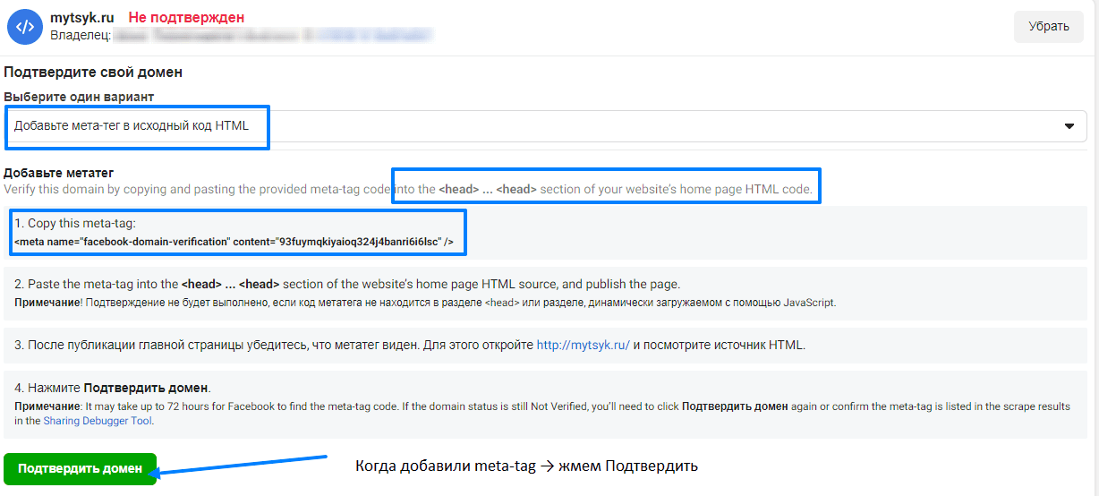 Рекомендую выбирать самый простой способ и подтверждать через meta-tag. Просто скопируйте код и вставьте его в head вашего сайта или попросите своего прогера.