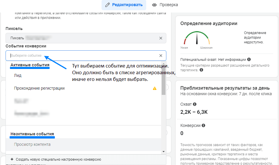 Сейчас объясню. На сайт мы можем добавить сколько угодно событий. Всё как раньше и они будут отслеживаться в рекламном кабинете. Но для событий оптимизации теперь есть ограничения (см. скрин).
