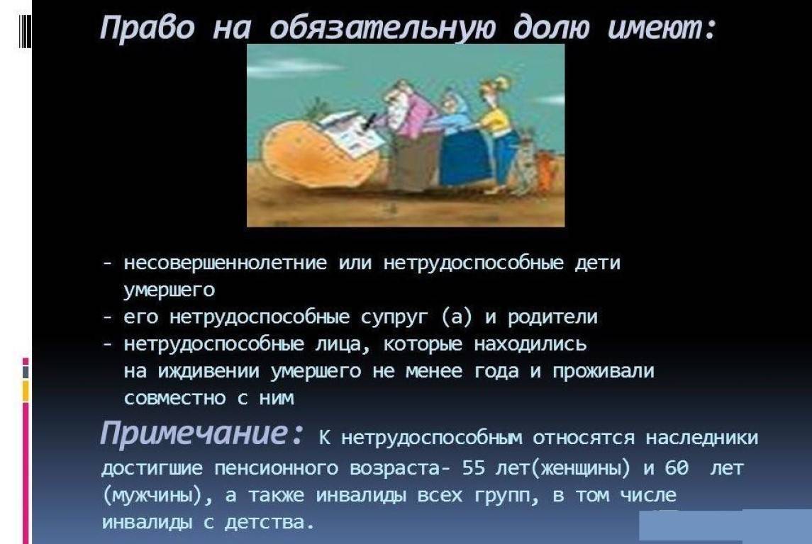 Кто имеет права на обязательную долю? Фото: myshared.ru