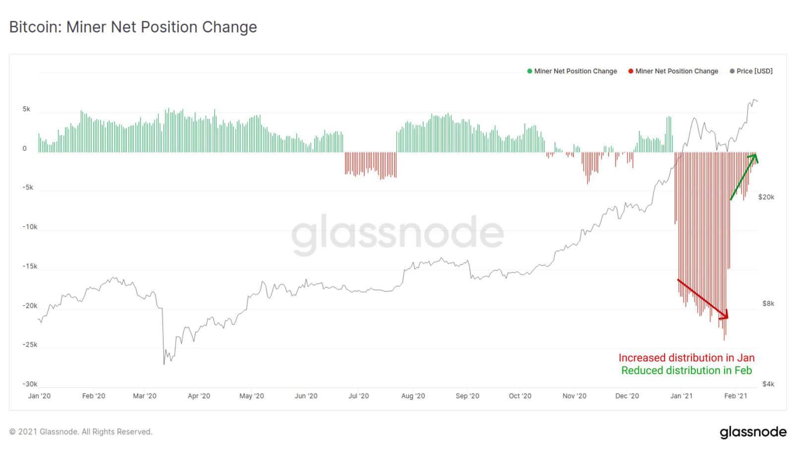 В недавнем отчете Glassnode утверждается, что майнеры и долгосрочные инвесторы являются двумя основными продавцами биткоинов во время бычьих трендов. Снижение оттока криптовалюты со стороны майнеров можно рассматривать как позитивный индикатор для роста криптовалюты, поскольку майнеры либо уже покрыли свои эксплуатационные расходы, либо накапливают монеты на фоне новостей о крупной инвестиции Tesla в BTC.