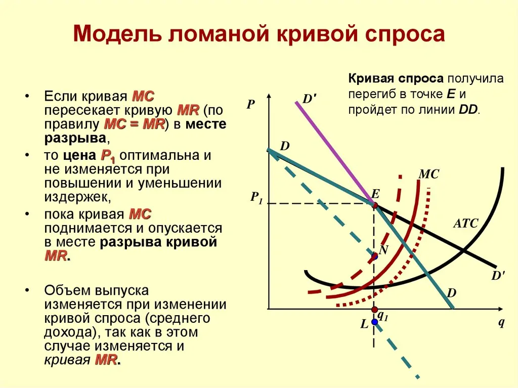 Здесь изображена модель ломанной (изгибающейся) кривой спроса