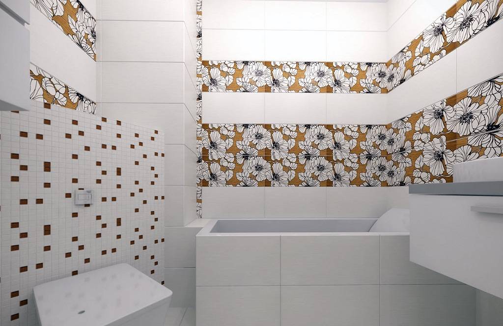 Для маленькой ванной оптимальным решением станет напольная 3d плитка или настенные вставки по периметру помещения. Неплохо также смотрятся широкие бордюры (фризы) с геометрическими узорами светлых тонов – они зрительно расширяют пространство и придают помещению ультрасовременный вид. Вставки можно использовать прозрачные и с подсветкой, так ванная приобретает более уютный вид.