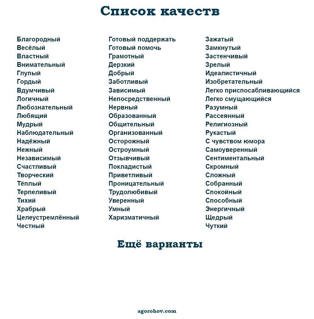 Список качеств я привёл для примера, можете найти другой или создать свой, с блэкджеком…