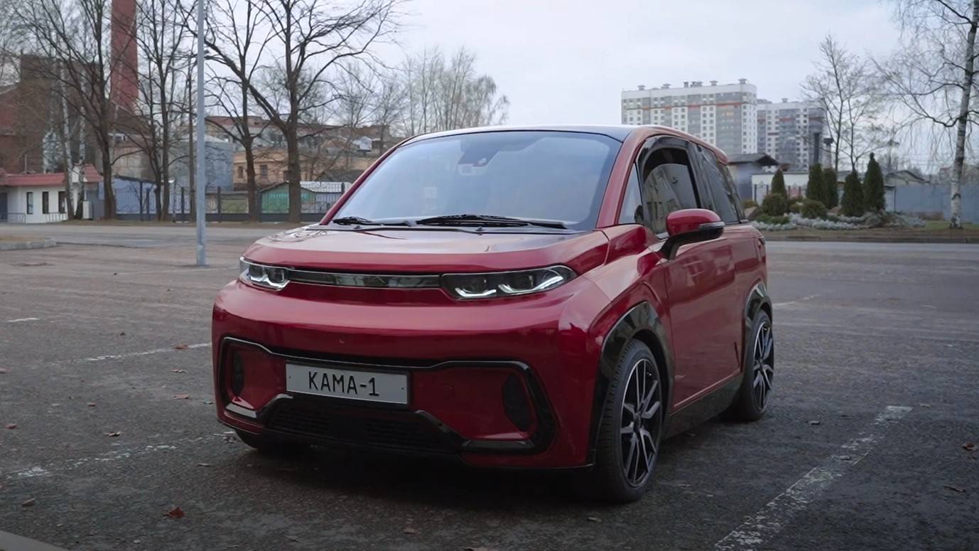 Электромобиль с современным комплексом водительских ассистентов получил название «Кама-1». Он представляет собой трехдверный четырехместный хэтчбек длиной 3,4 метра, шириной 1,7 метра и высотой 1,6 метра. Он получил литий-ионный аккумулятор емкостью 33 киловатт-часа и электромотор мощностью 80 киловатт, что позволяет ему развивать скорость до 150 км/ч и проезжать до 250 километров на одной зарядке.