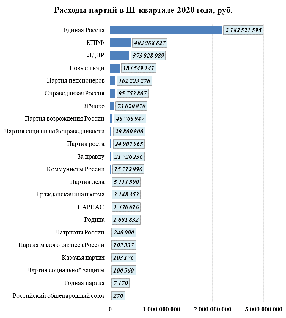 Если посмотреть на общие траты партий за III квартал 2020 года, то станет понятно – расходы одной партии выше, чем суммарные расходы всех остальных: