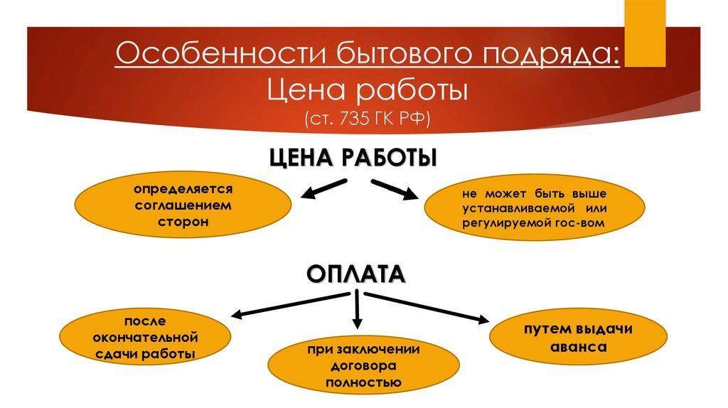 Этот договор схож с подрядной сделкой тем, что исполнитель выполняет по требованию заказчика конкретные действия за установленную плату. Соответственно, в некоторых вопросах стороны соглашения могут использовать нормы о подрядной сделки или нормы о бытовом подряде.