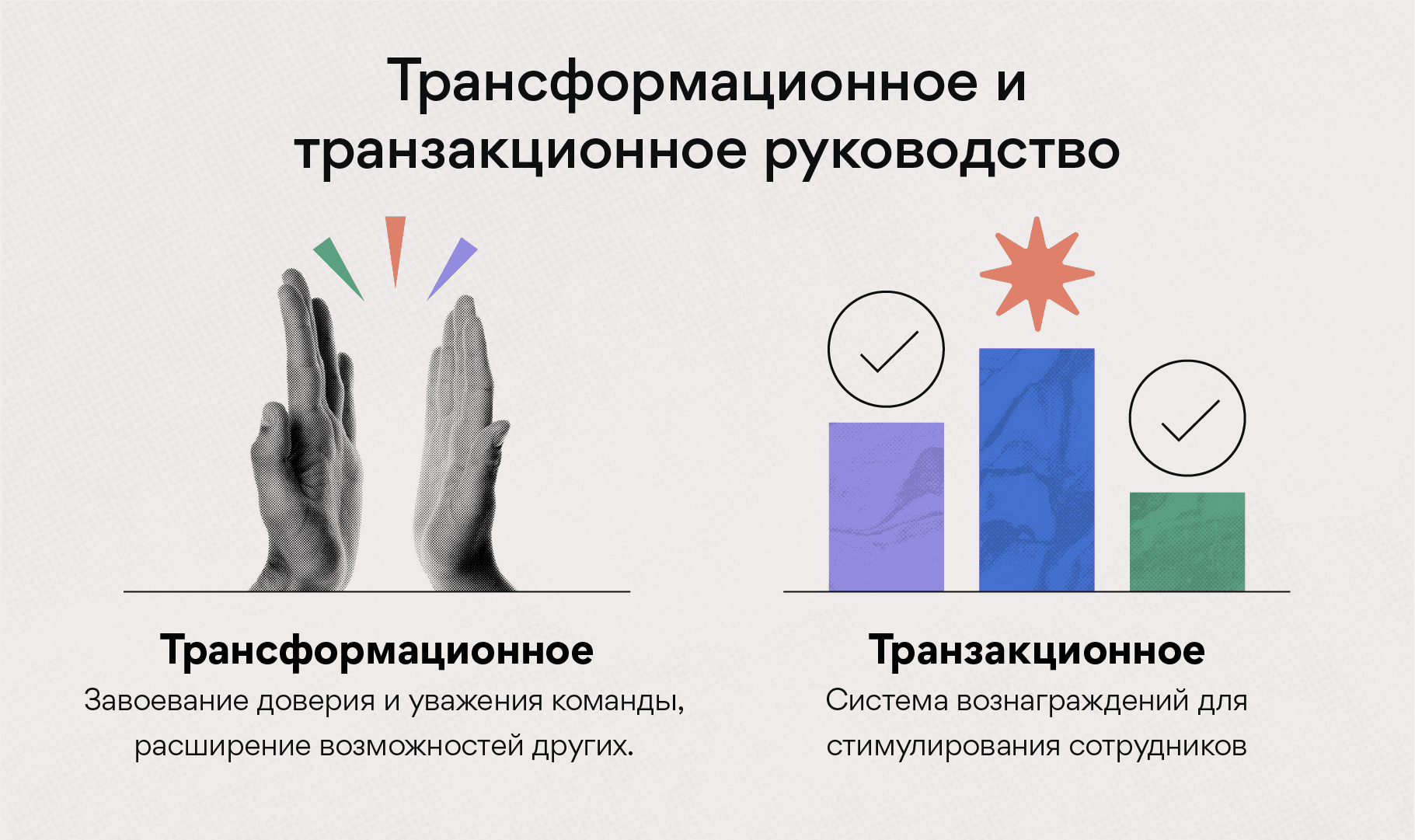 Помимо теории лидерства Левина и теории эмоционального лидерства есть ещё два стиля лидерства, достойных вашего внимания: трансформационное и транзакционное лидерство.
