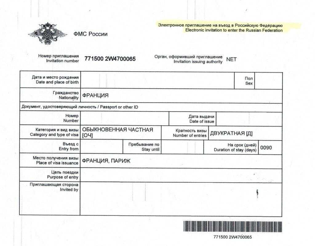 - ФИО принимающей стороны и планируемый адрес проживания гостя, его ФИО, дата рождения;