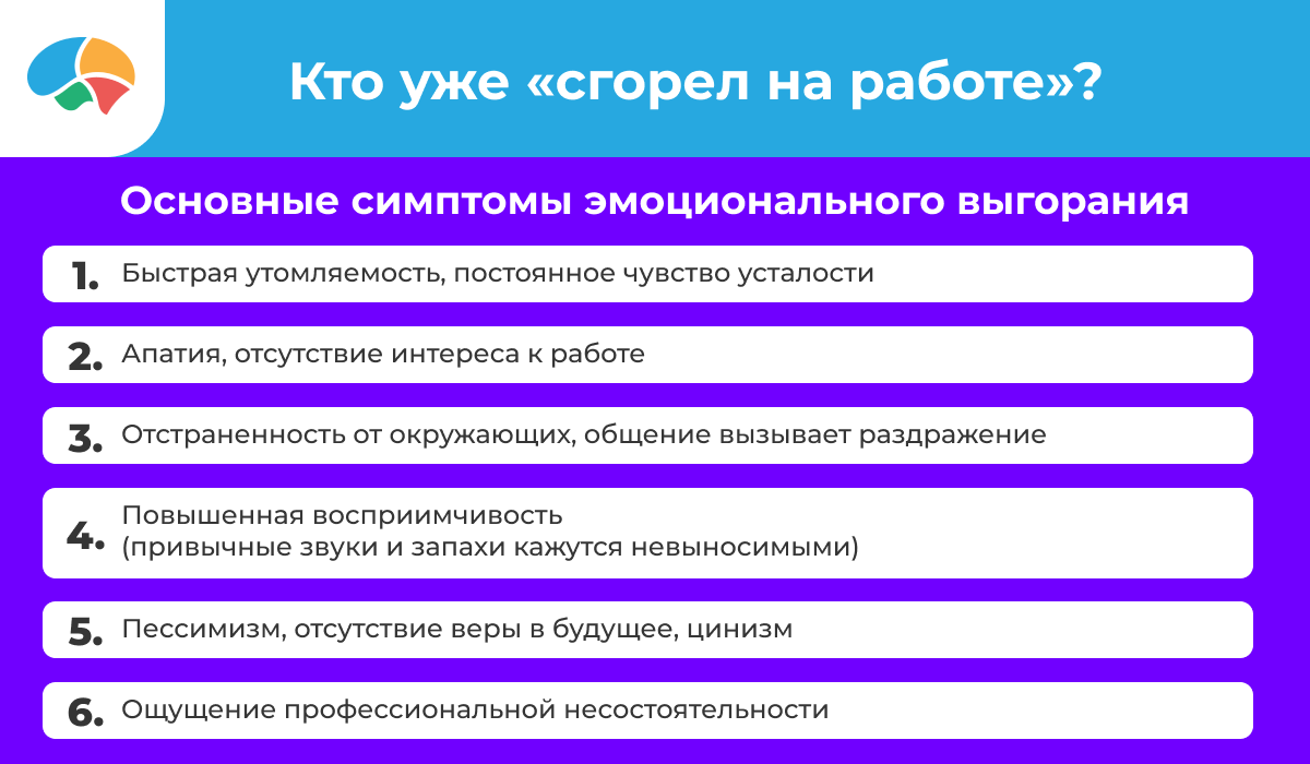 - Будет очень хорошо, если в вашей организации будет работать штатный психолог. Он сможет заметить первые «звоночки» выгорания у сотрудников и помочь им вовремя с этим справиться.