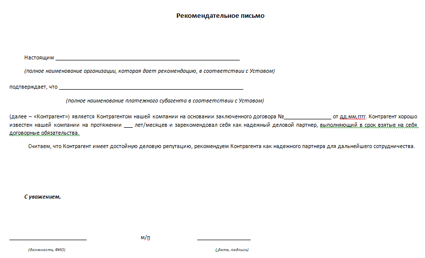 - В конце основной части указывается, что компания рекомендует юридическое лицо как надежного партнера, отвечающего по своим обязательствам.