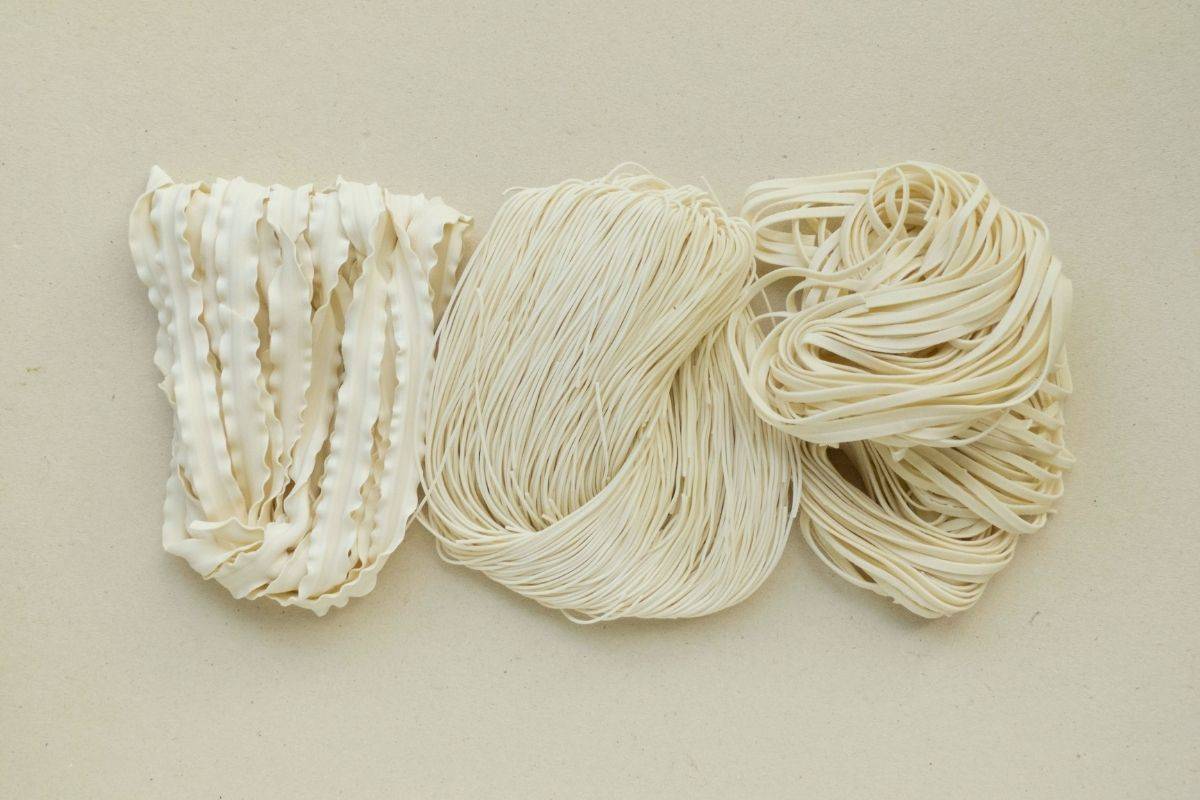Как и любое другое макаронное изделие, лапшу делают из муки высшего сорта и воды. Дополнительными ингредиентами в этом рецепте являются загуститель, яичный порошок и крахмал.