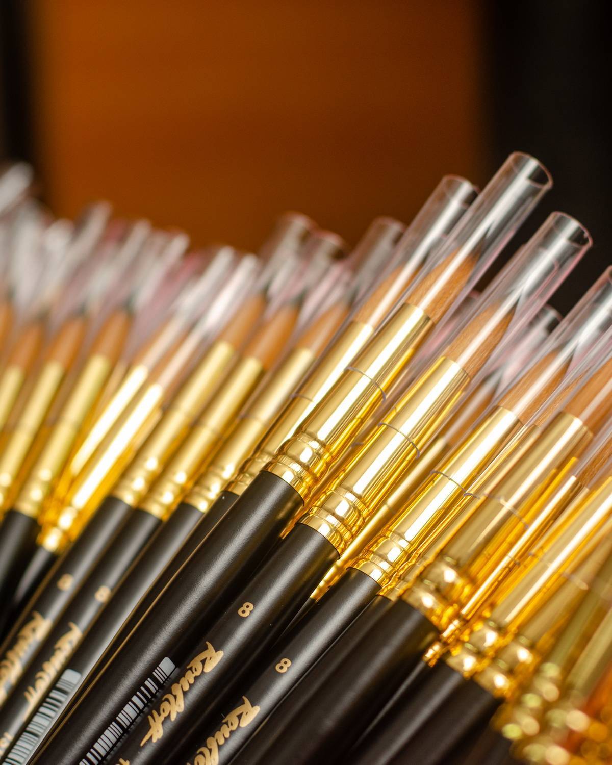 В результате кисти из синтетики под колонок, в которых используется алюминиевая обойма, стали любимыми у потребителей. А серия кистей с золотистой анодированной алюминиевой обоймой — образец аккуратности в зажиме и в ровности скруглений у плоских кистей.