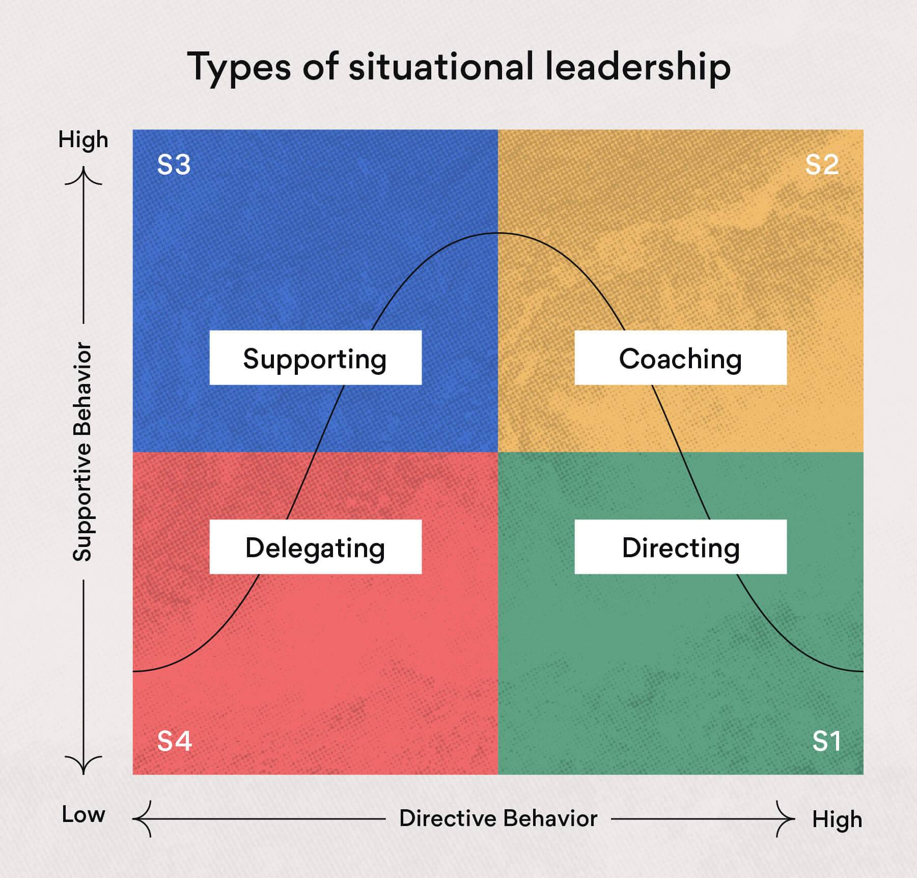 Директивное поведение — это степень, в которой вы указываете сотрудникам, что и как делать, где это должно быть сделано и когда должно быть завершено. Поддерживающее поведение — это степень, в которой вы общаетесь с сотрудником, активно слушаете его и признаёте его прогресс в выполнении задачи.