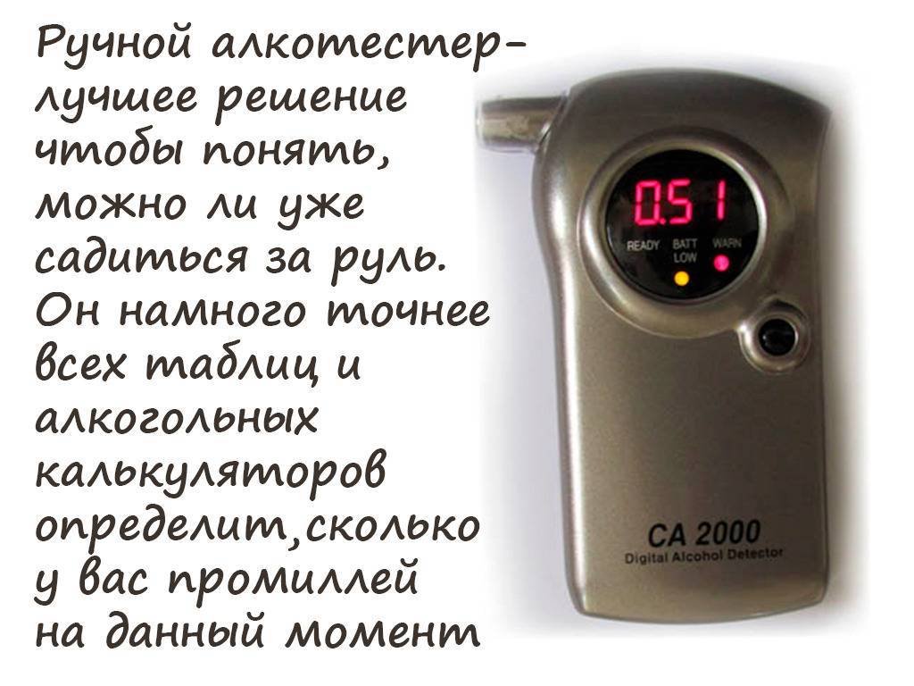Поэтому, отвечая на вопрос: «сколько можно выпить за рулем?», ответ — «нисколько». Лучше приобрести личный алкотестер (сейчас на него цены вполне доступны) и проверять самостоятельно насыщенность своего «амбре», чтобы определять точно, когда можно садиться за руль после алкоголя.