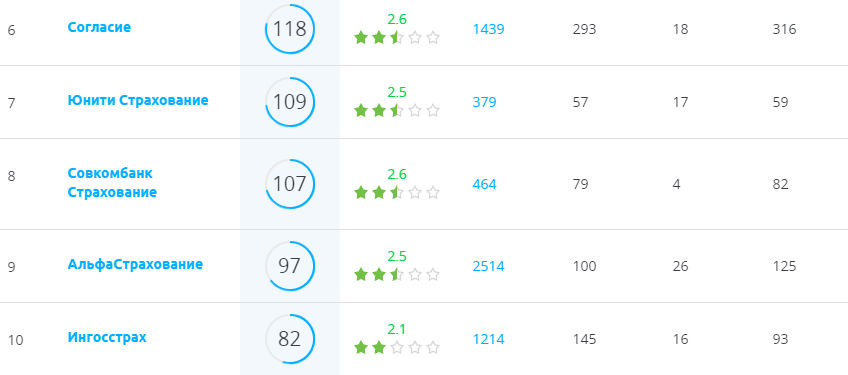 Рейтинг страховых компаний по КАСКО за 2017 год