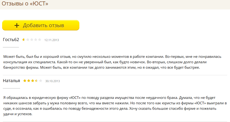 Полезно почитать отзывы других людей – тех, кто уже воспользовался услугами юридической компании. Найти их просто – достаточно забить в поисковик “название компании отзывы”