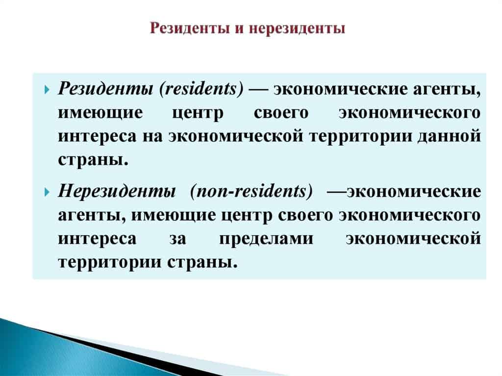 Определения резидентов и нерезидентов даются в законодательных актах каждого государства, и могут иметь определенные отличия для разных стран.