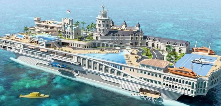 Почётное третье место занимает яхта – «город на воде». Дизайн проекта весьма эксцентричный. Борт судна представляет собой Монако в миниатюрном исполнении. Всё выполнено до мельчайшего сходства с реальностью. На «Streets of Monaco» расположили казино, рестораны, прогулочные аллеи (идентичные тем, что в реальности), вертолётную площадку и ОТЕЛЬ! Помимо трёх этажей, построенных для будущего обладателя всей этой роскошью, на борту есть 7 номеров для гостей. Длина судна более 150 метров, оно оснащено подводными лодками к услугам гостей.