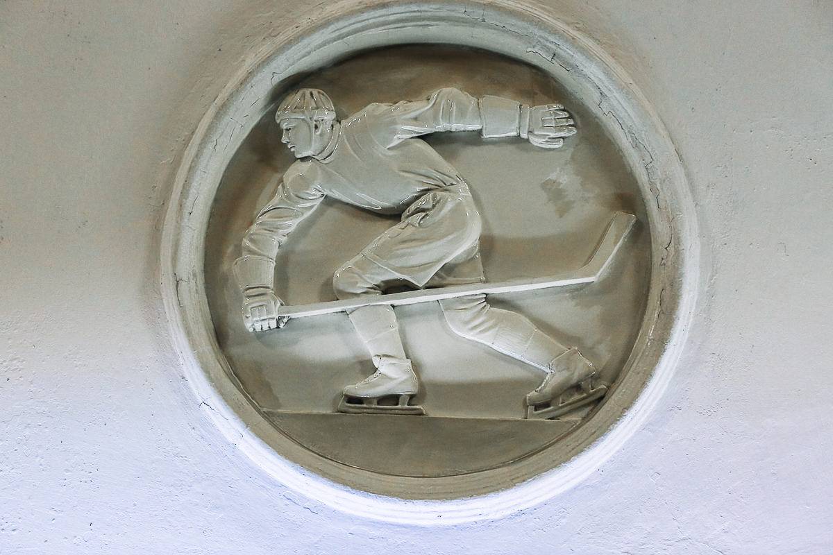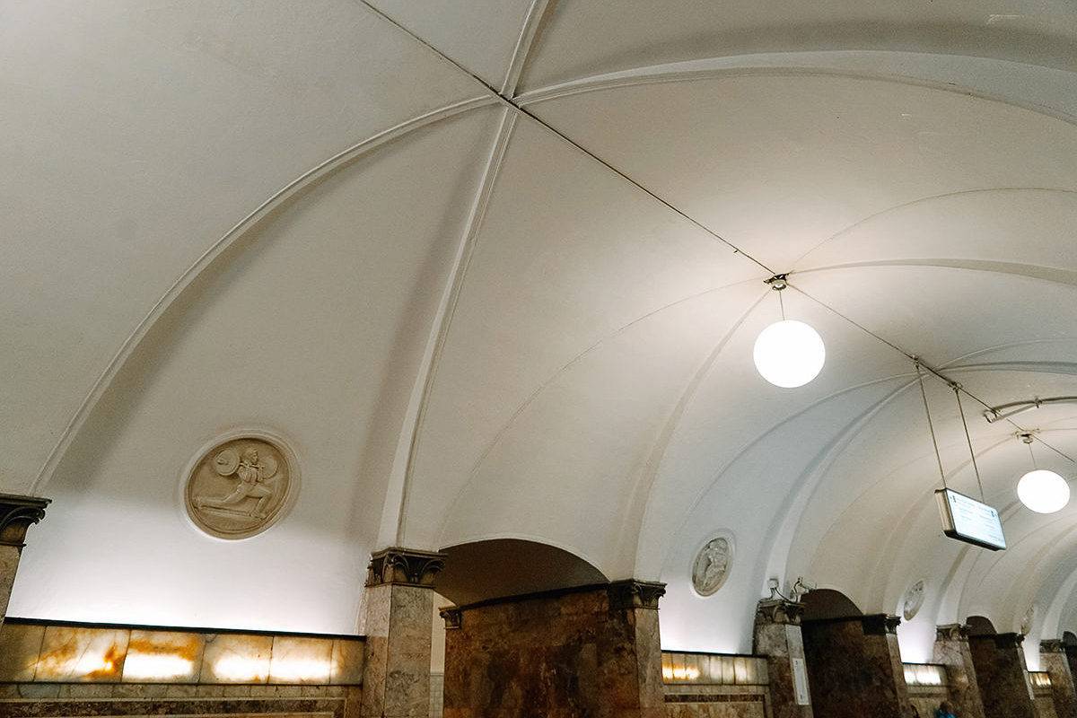 Самая спортивная станция, находящаяся поблизости от знаменитого стадиона «Динамо». Облицовка выполнена из мрамора, в котором можно увидеть множество окаменелостей морских организмов аж мелового периода! Особенно много там кораллов, но встречаются также окаменевшие раковины брюхоногих моллюсков и брахиоподов. Кроме впечатляющих древностей, станцию украшают 60 фарфоровых медальонов: они изображают спортсменов, которые упражняются в 21 виде спорта. Метание диска, скалолазание, лыжи, спортивная гимнастика, фигурное катание… Прототипами для некоторых из барельефов послужили реальные люди.
