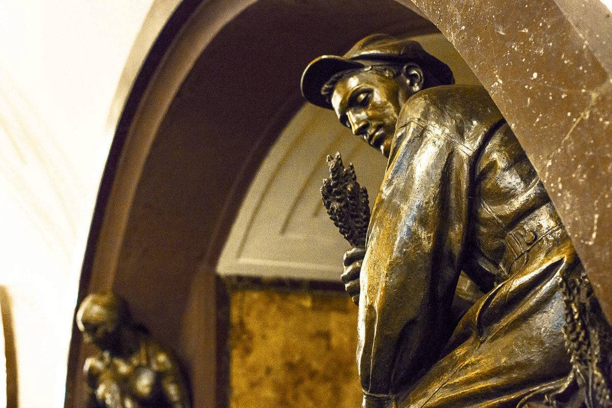 Здесь находится самая известная примета Московского метрополитена — счастливая собака! Если погладить нос бронзового пса у скульптуры «Пограничник с собакой», удача не заставит себя долго ждать. В результате, как вы можете догадаться, мордочка у бедняги натерта до блеска.