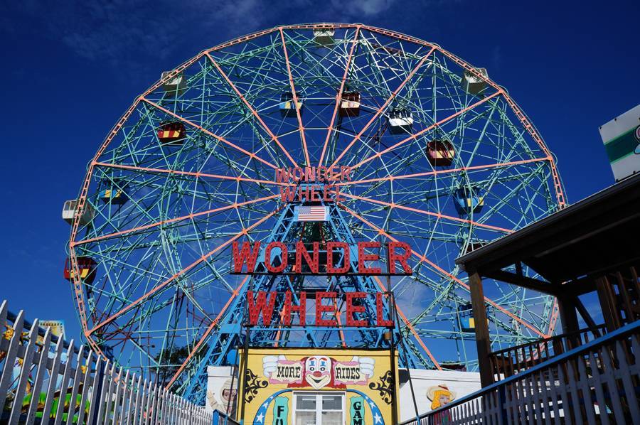 Wonder Wheel является главной достопримечательностью парка развлечений в Бруклине, имеет высоту 45,7 метра и может одновременно вместить до 144 пассажиров.