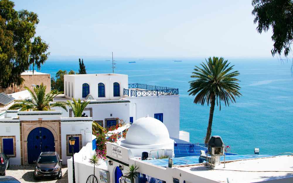 Сиди-Бу-Саид — сказочный маленький город бело-голубого цвета на берегу моря, утопающий в цветах. Это национальный памятник, здесь запрещено красить дома в другие цвета.